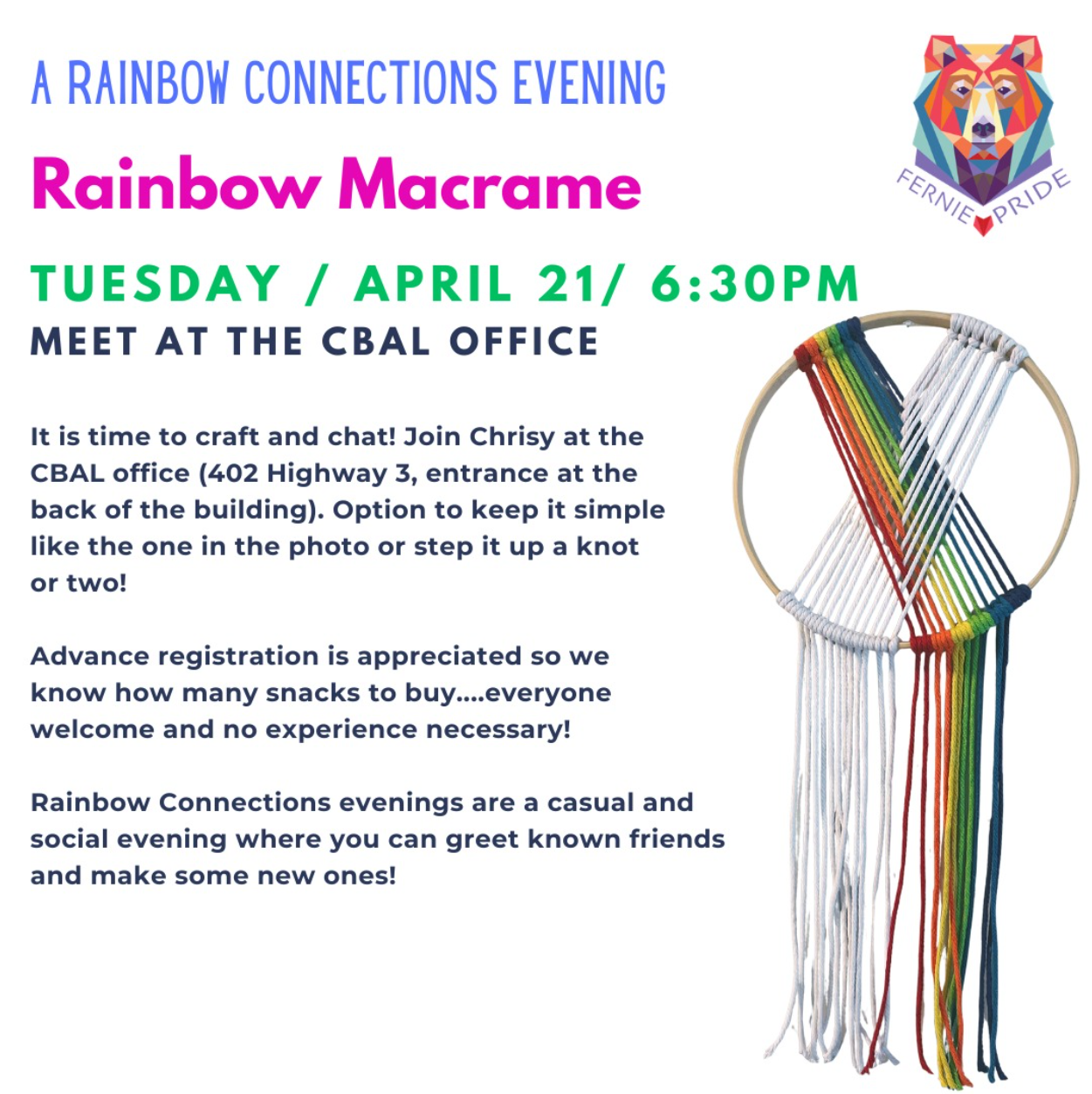The Fernie Pride Society supports and connects the 2SLGBTQ+ community in the Elk Valley. Incorporated in December 2016, the Society is a hub for 2SLGBTQ+ people and their allies, programming special events as well as providing resource referrals.